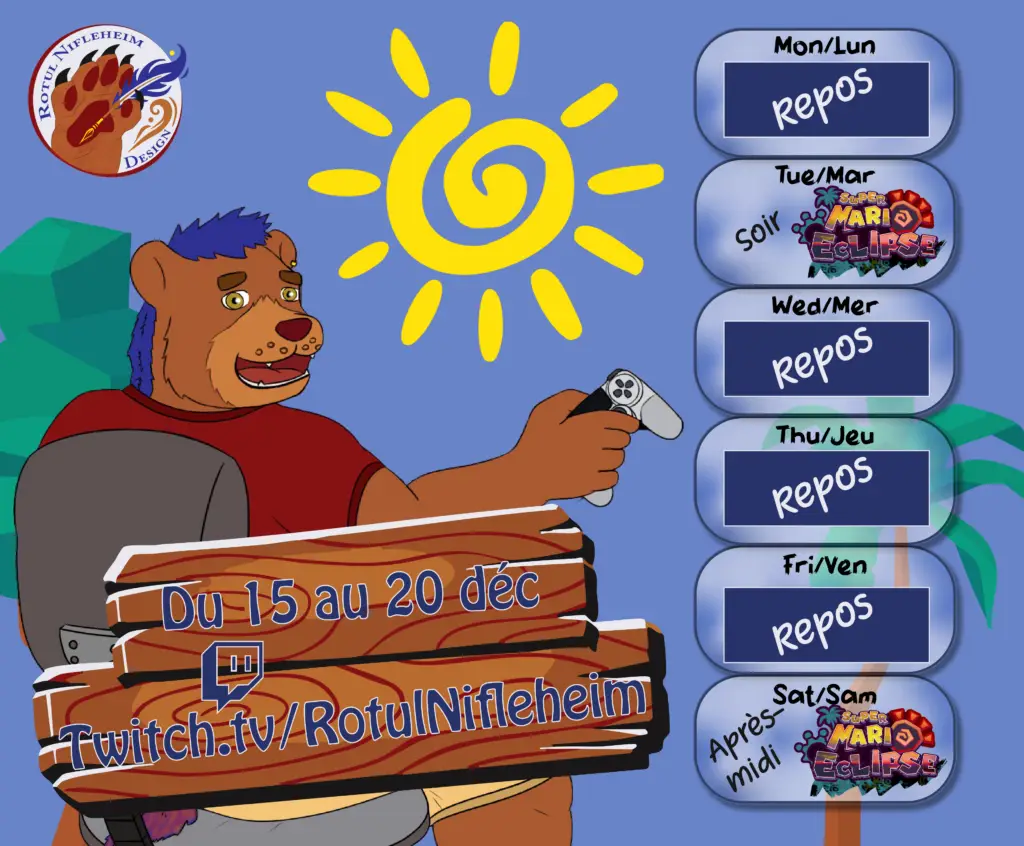 Je fais du VTubing : il s'agit d'utiliser un avatar (modèle 3D) comme marionnette pour s'exprimer à l'écran. Rotul est donc l'animateur de l'émission diffusée sur Twitch !